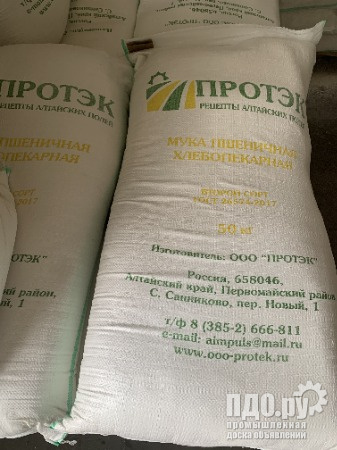 Компания «ТД «Продак» реализует муку пшеничную хлебопекарную собственного производства ГОСТ в/с, 1 сорт, 2 сорт, общего назначения, муку пшеничную хлебопекарную цельнозерновую обойную, муку ржаную хлебопекарную обдирную. Вся продукция проходит тщательный лабораторный контроль. Гибкая система скидок. Самовывоз/доставка в любой регион России. Документы качества и коммерческие предложения по запросу bakalyas@rambler.ru Компания «ТД «Продак» ТМ «Протэк» – это современное предприятие по производству и реализации муки оптом. Компания представлена на рынке с 2007 года, это алтайский зерноперерабатывающий комплекс с полным высокотехнологичным циклом, который уже успел завоевать доверие своих постоянных покупателей. Предприятие оснащено современной производственной линией мощностью более 2000 тонн в месяц, включающее в себя лабораторию с самым передовым испытательным оборудованием российского и импортного производства. Залогом качества нашей продукции, является добросовестный труд профессиональной команды единомышленников, а также постоянное усовершенствование технических и технологических процессов производства. Производственные и складские комплексы расположены в с. Санниково (Первомайский р-н Алтайского края). Доставка продукции осуществляется автомобильным и ж/д транспортом в любой регион России, СНГ, ближнего и дальнего зарубежья. Коды ТН ВЭД по видам выпускаемой продукции: 1101 00 150 0 – мука пшеничная; 1102 90 700 0 – мука ржаная.